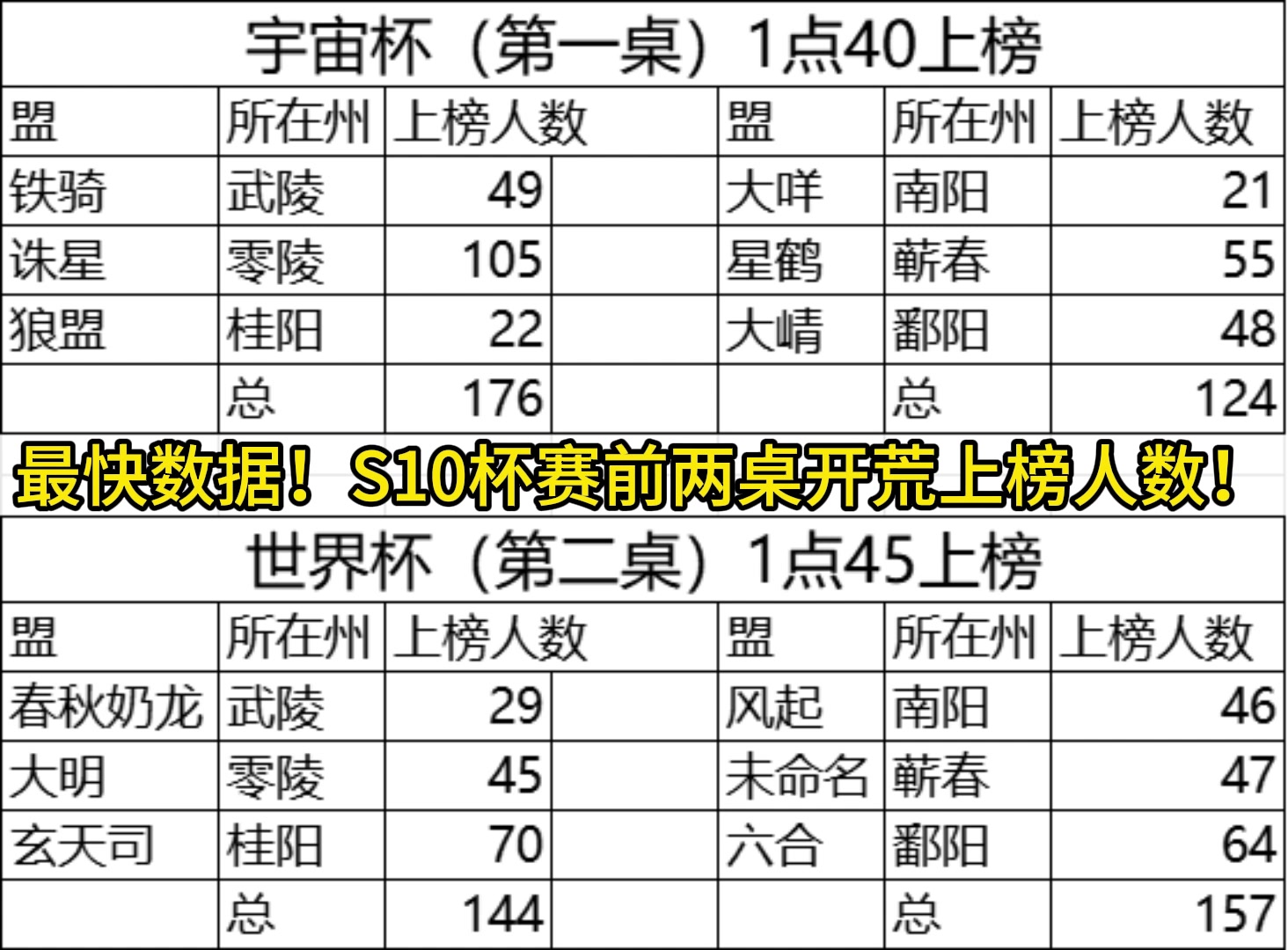 最快数据!S10杯赛前两桌开荒上榜人数!