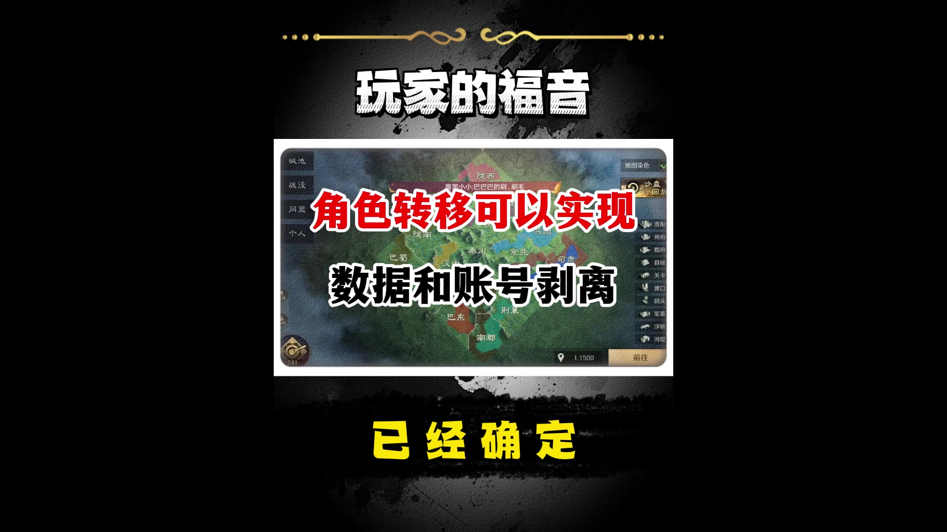 确定游戏玩家数据和账号可以剥离!