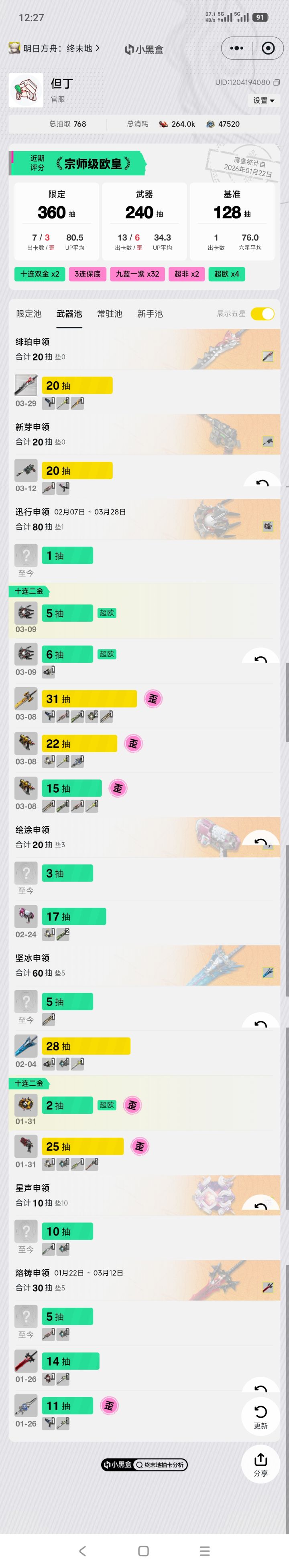 由于过于无聊,索性抽个大保底,庆祝退游