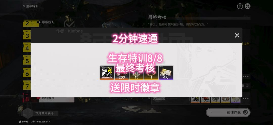 2分钟速通,生存特训8/8最终考核,送限时徽章