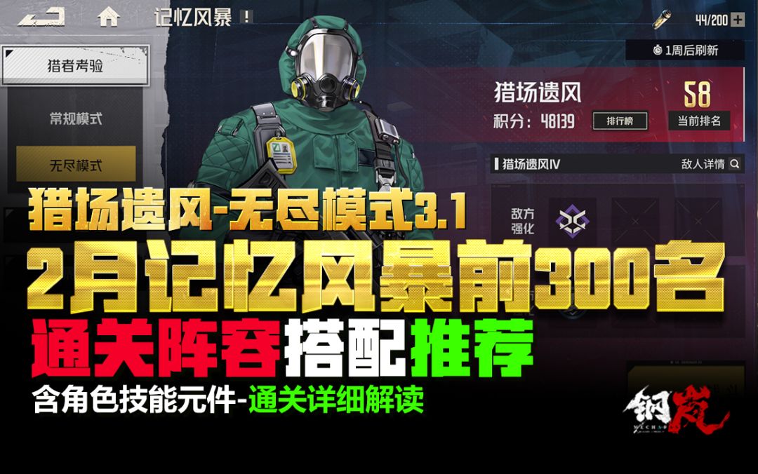 钢岚《2月份记忆风暴3.1猎场遗风·无尽模式·前300名》