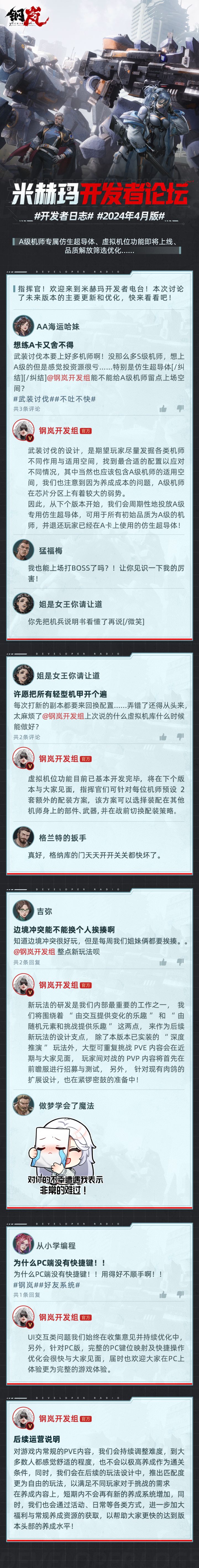 =卡池更新=【如昙初绽】开启时间:4月25日10:00后指挥官拓殖许可等级达到Ⅲ-1后开启,持续两周活动期间指挥官可在虹和西尔维娅中任选一位,招募获取该机师的概率大幅提升【震恐撕裂】开启时间:4月25日10:00后指挥官拓殖许可等级达到Ⅲ-1后开启,持续两周活动期间指挥官可在格莱杨和恐爪中任选一台,海运获取该机兵的概率大幅提升【决意的女武神】开启时间:4月25日10:00-5月9日10:00