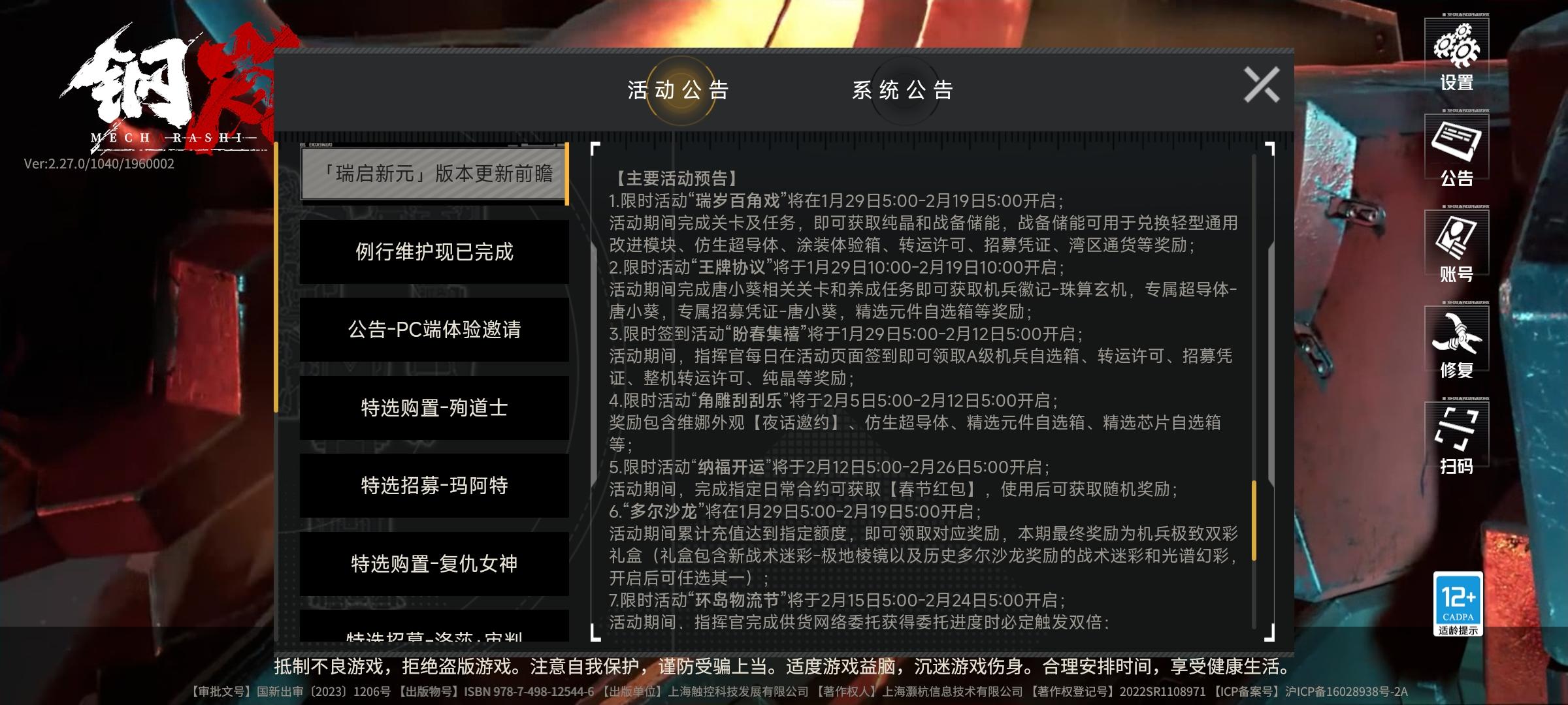 大佬们,萌新刚入坑,看了很多攻略,很多 很杂 ,各种时间的都有,越看越迷糊了。请各位大佬给我指条明路 当前版本怎么开局。自选机师 机甲怎么选 , 哪些机师 机甲必抽。 谢谢了各位大佬🙏