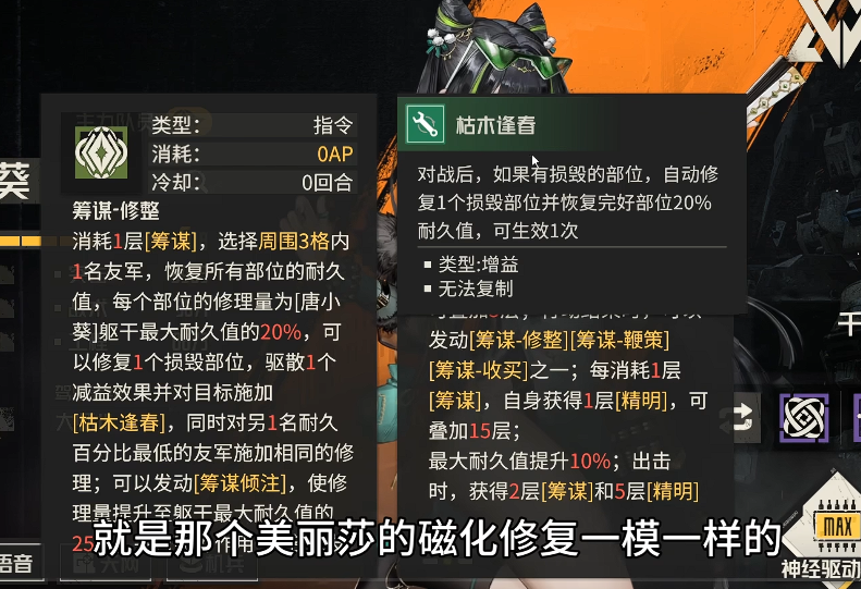 歪了一个,本来还觉得幸运。现在小葵零命就有了莎莎三命的效果!这就完全被上位了呀。不过小葵的特效是《枯木逢春》,梅丽莎的是《磁化修复》,两个名字不一样,要是一同生效的话,不就是回合后能保两个部位了吗!但是谁会上两个奶妈呀!(`Δ´)ゞ