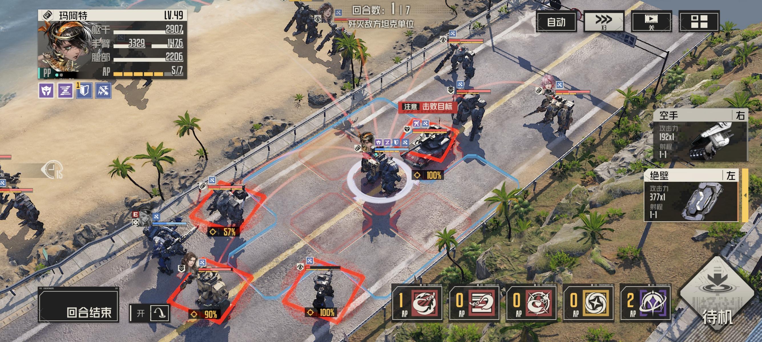 隔着人墙,直接把人家坦克都拉过来了😂那种逃命的关卡,直接奥德莉起手,把玛阿特甩出去老远,然后艾达赶路,接着玛阿特勾住艾达往前跑,一个跳跃穿过人潮,走几步,反过来把艾达勾到目的地,简直一回合就能通关。不过很有意思的是,奥德莉要是把亲卫直接甩到逃命点,亲卫会撤离,但不算做撤离积分!而玛阿特勾到撤离点就可以!