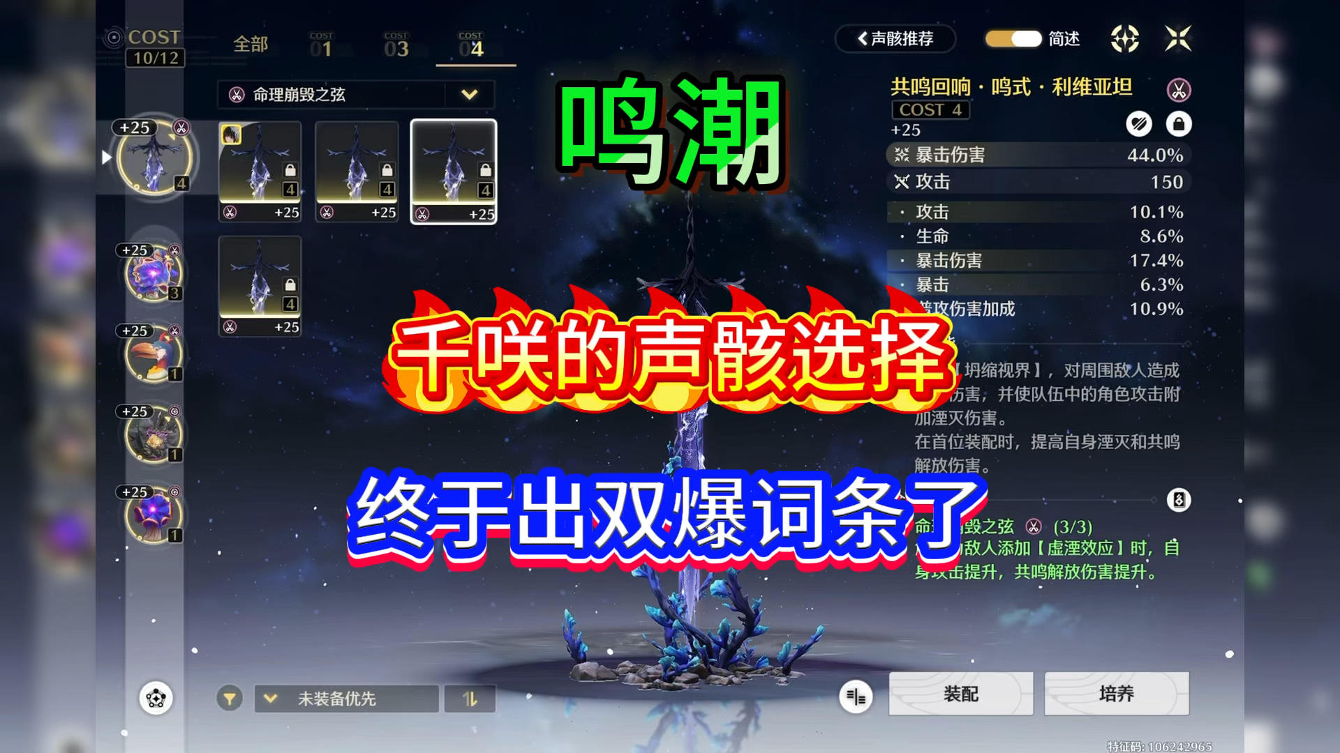千咲的声骸终于来双爆了,真的是把她当主C养了,太难养了