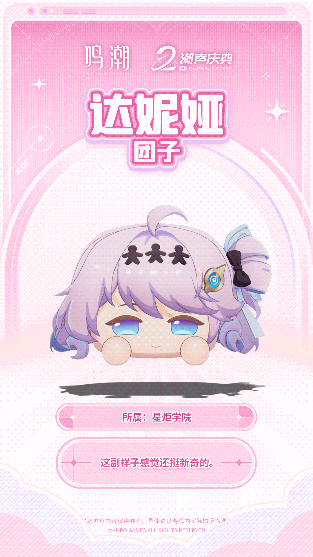 #鸣潮 #鸣潮自星海尽处回响 #鸣潮二周年潮声庆典 ✦ 达妮娅团子 ✦“这副样子感觉还挺新奇的。”✦ 爱弥斯团子 ✦“‘团子’小爱,变身完成~”✦ 琳奈团子 ✦“状态不错,这次要去哪?”✦ 千咲团子 ✦“唔……新奇的体验。”✦ 西格莉卡团子 ✦“怎么变成了这个样子……我会找到答案的!”《鸣潮》二周年潮声庆典,3.3版本「自星海尽处回响」将于4月30日正式开启!下载游戏: