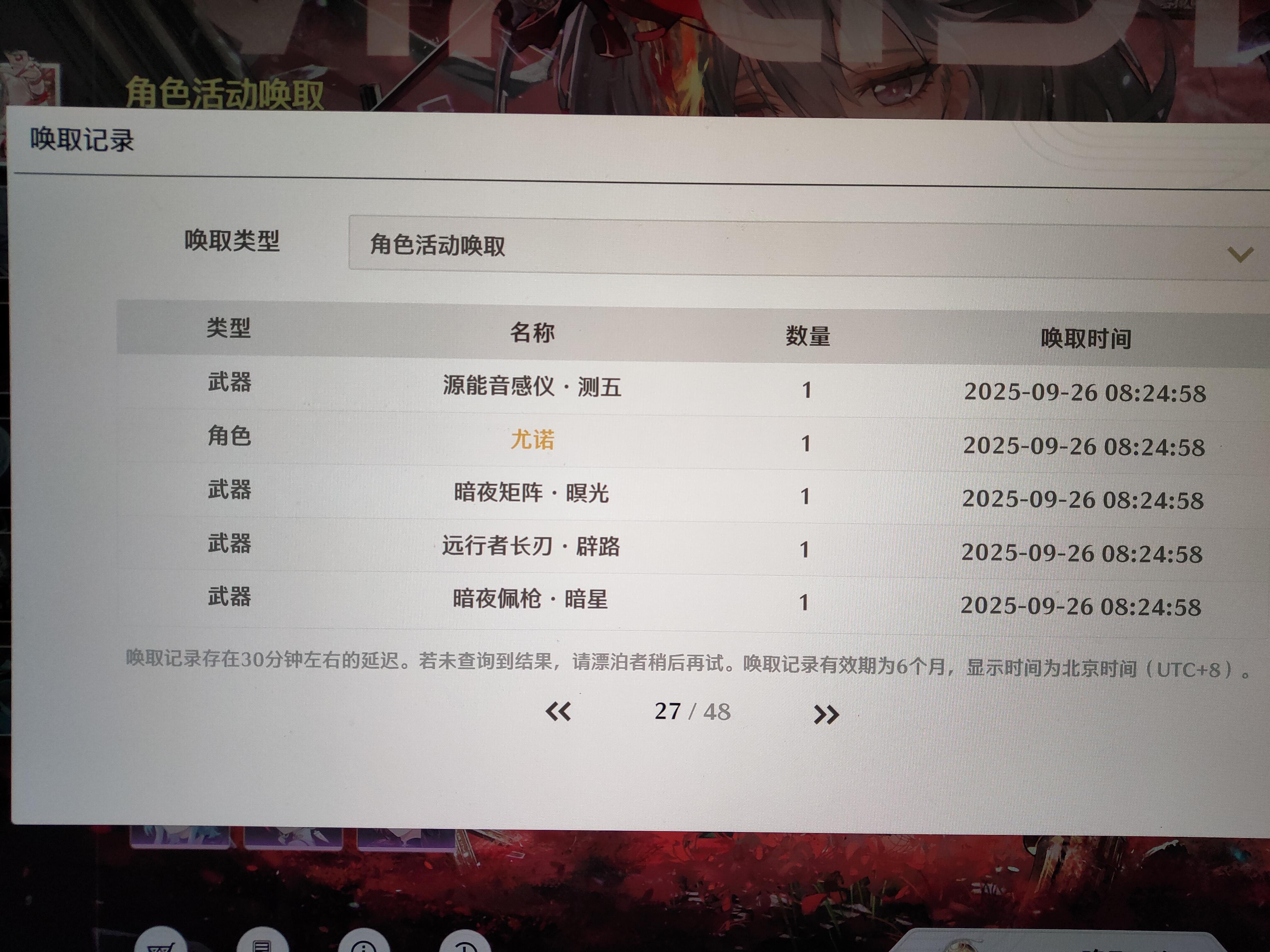 洛洛第一次出剧情的时候回来看看,这之前抽赞妮菲比都是小保底很不错了!第一次洛洛大保底六十七抽然后忙了大半个月没时间玩电脑,优诺是爱我的回坑第一个十连就出了,算上之前的一共是小保底三十七然后这次想给洛洛抽一命,结果六十六歪了安可宝贝。今天好不容易休息睡醒就开肝一直到晚上大保底六十五抽没出,虽然遗憾但爱你的心不变#欧皇附体 #游戏日常