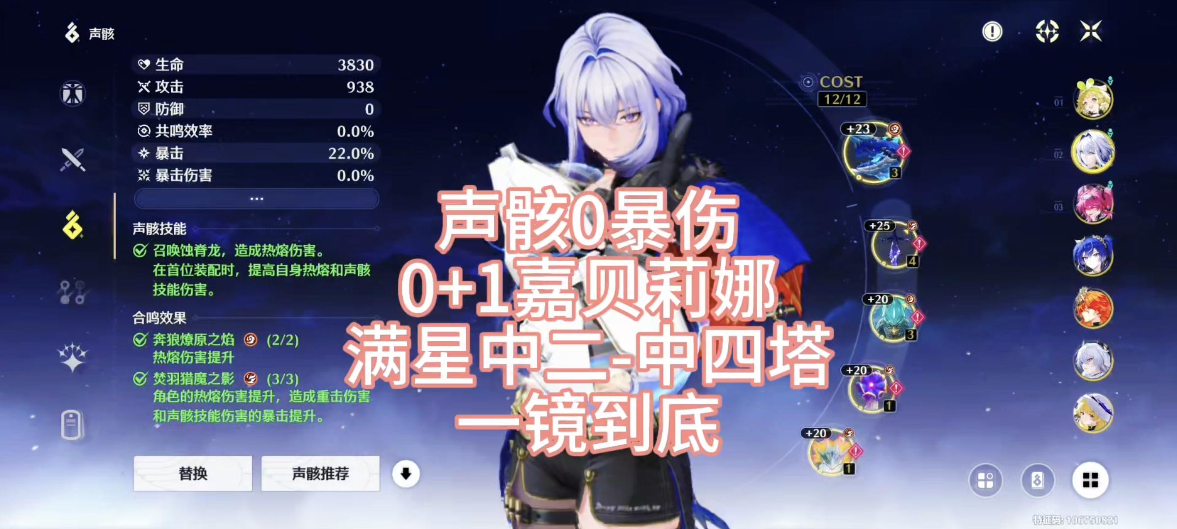 声骸0暴伤,0+1嘉贝莉娜,满星中二中四塔,一镜到底(手机端)