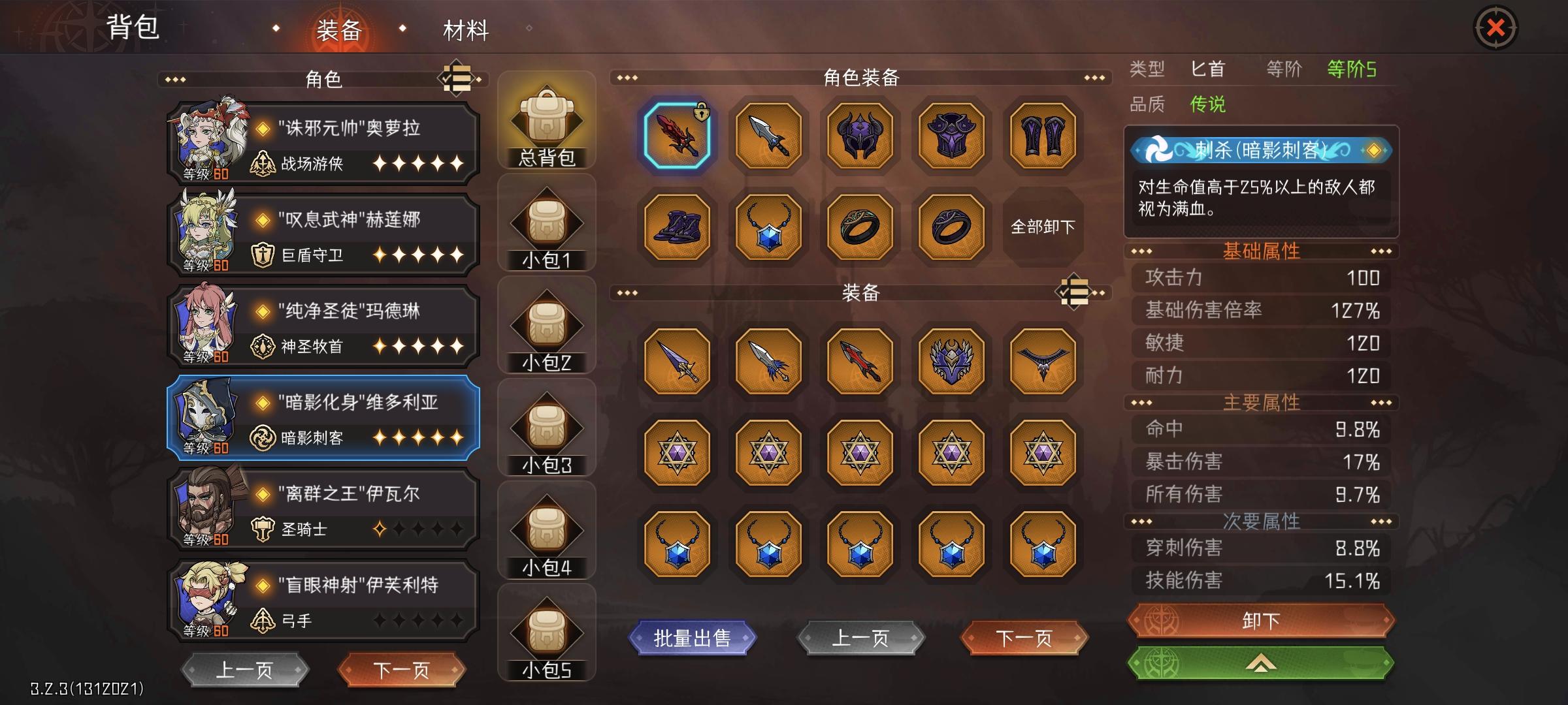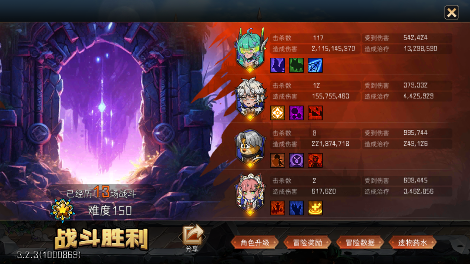 劈砍转龙骑帝牧带着,算比较常规阵容了,赛季初,暂未开始刷装备,装备词条基本都不对。初步验证强度。配装大家自己看榜单新活动天神觉醒150通关,无尽因为装备没强化,龙骑命中不足,基本也就30多层了,等换完装备再玩除了章鱼外,前20关1T,27关需要2T。天神可以调整,可以不要血神,我是挂机用的没调整我鳄炮的属性搭配,所伤>爆伤>造伤>命中>暴击。开服2天通关天神4天无尽47鳄炮已经完成他