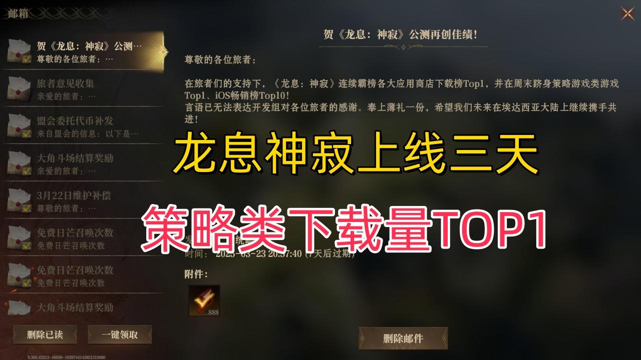 谁说西幻游戏没市场?龙息神寂上线三天,成策略游戏TO1!