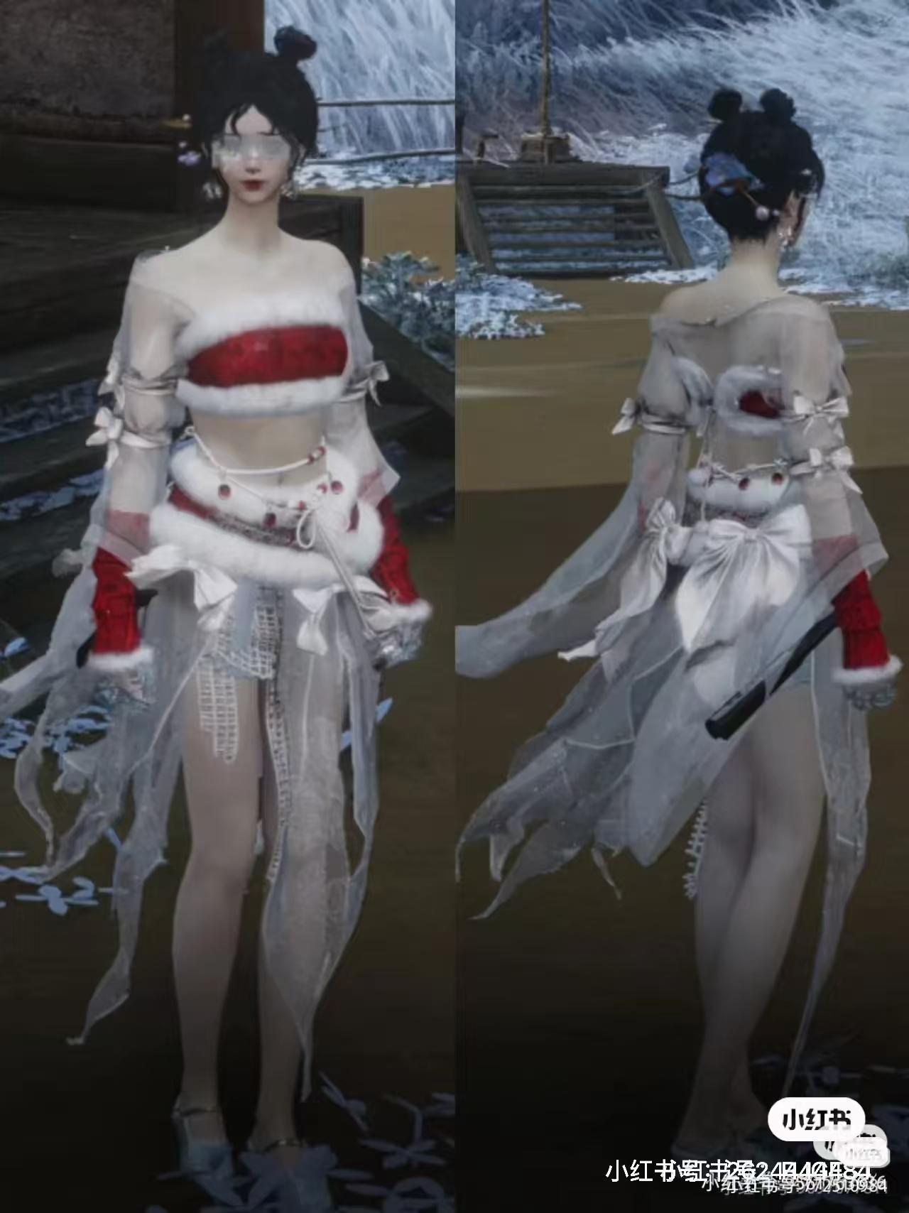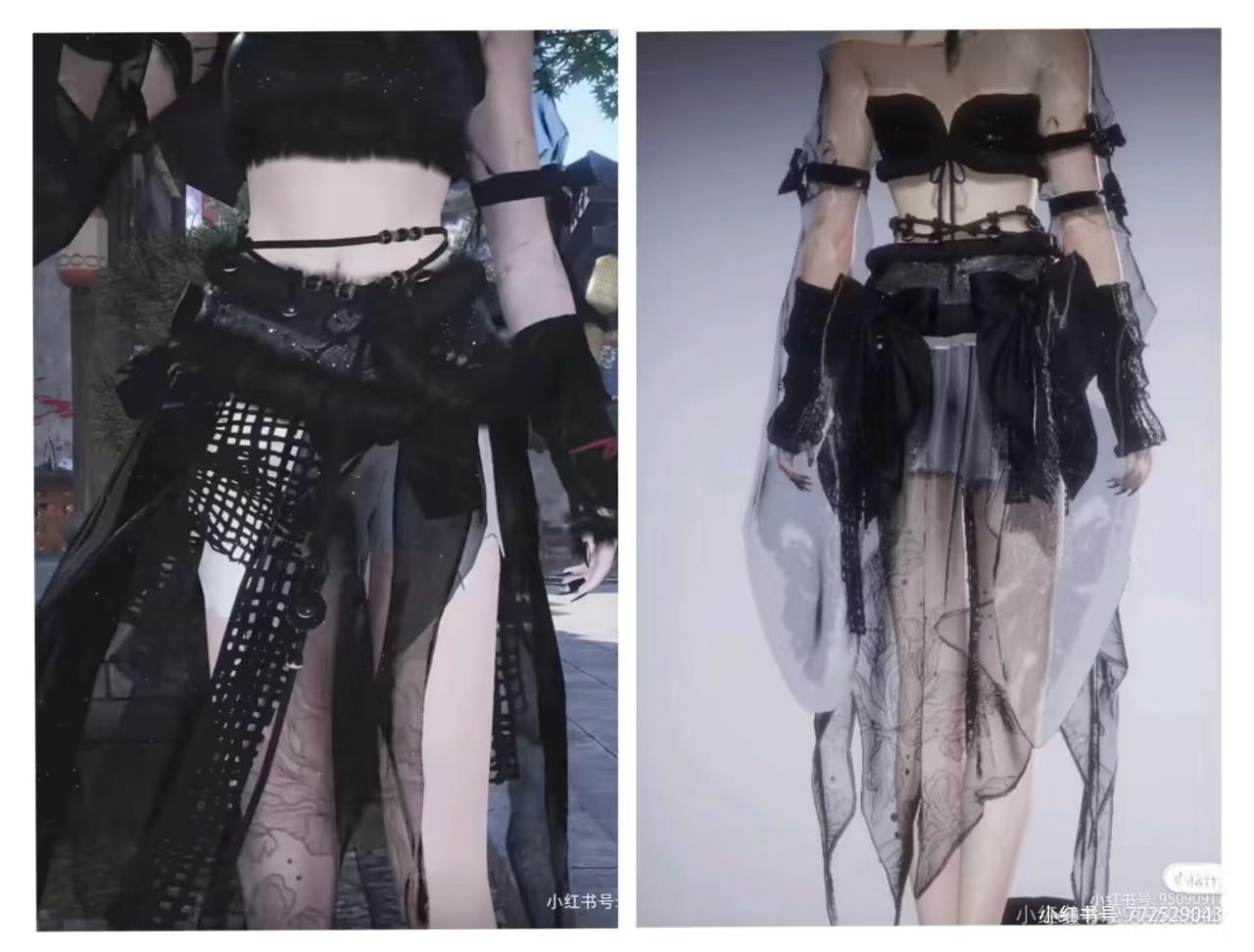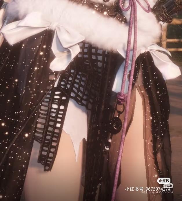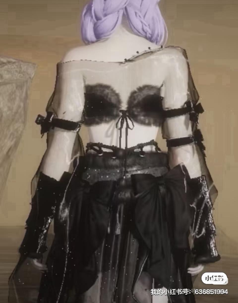 不排除这个衣服有萌的正常加裤子的穿搭,但是这个渔网,这个漏底裤,纱可以染成透明,这个蝴蝶结,毛边家露腰露腿,已经有人通过这个服装开始涩情化女号了,正常搭配玩家没理由发挥搭配之力为这件衣服缺少的布料多花心思,多花钱后面那几张图我晃一眼我以为是那个黄色网站的3d区人物跑出来了,早说我下的是情趣游戏啊。当然可以不用染成那样,但是不染成那样不代表这种染色不存在,也改变不了后面就是一根绑带的设计以及超短裤