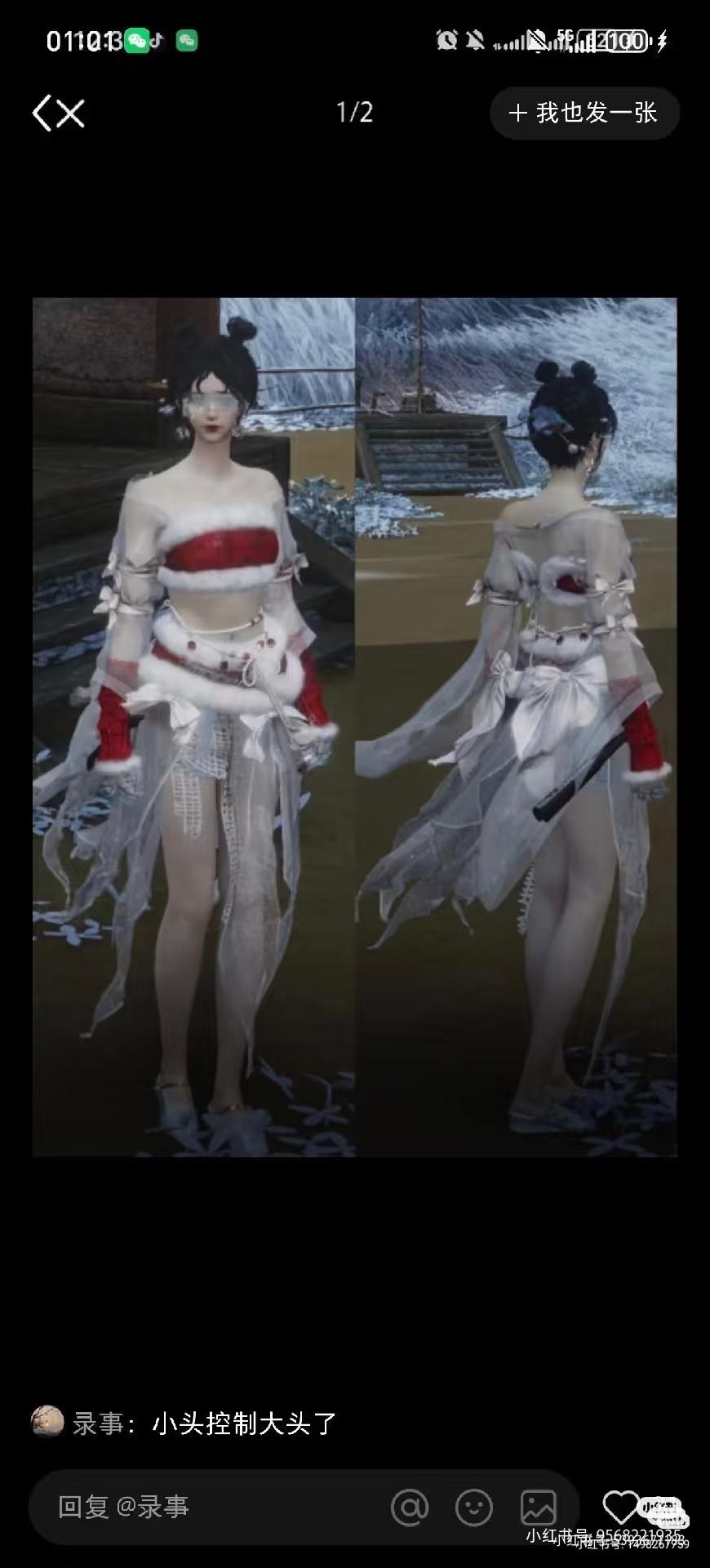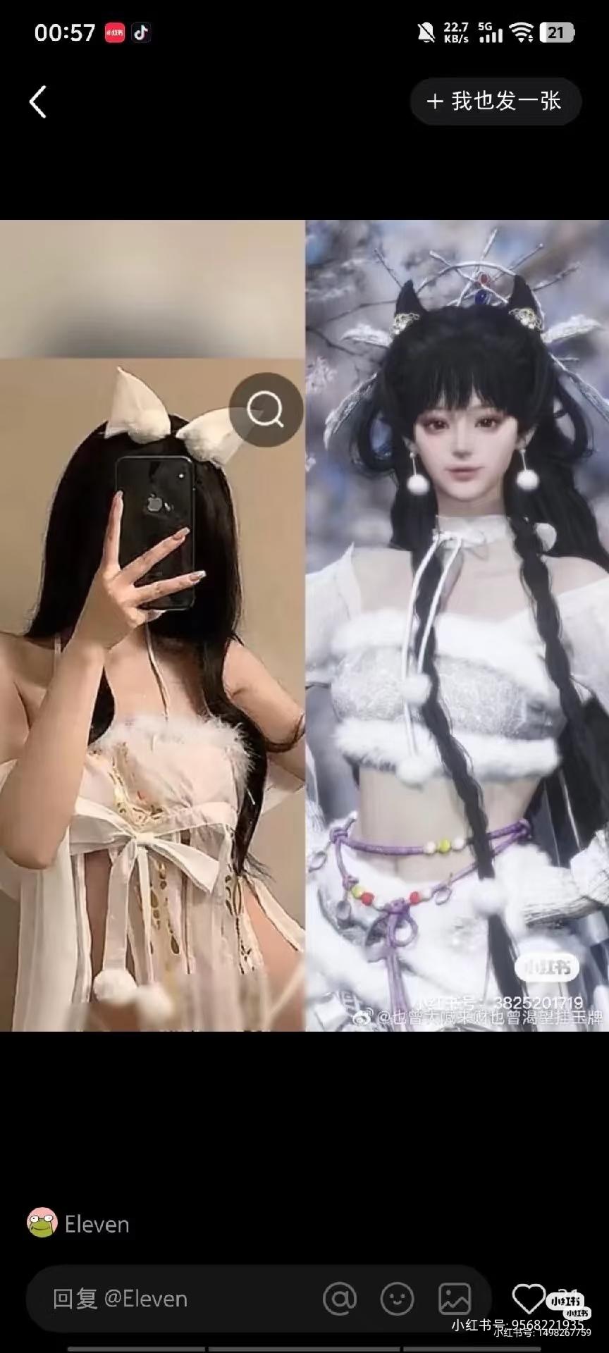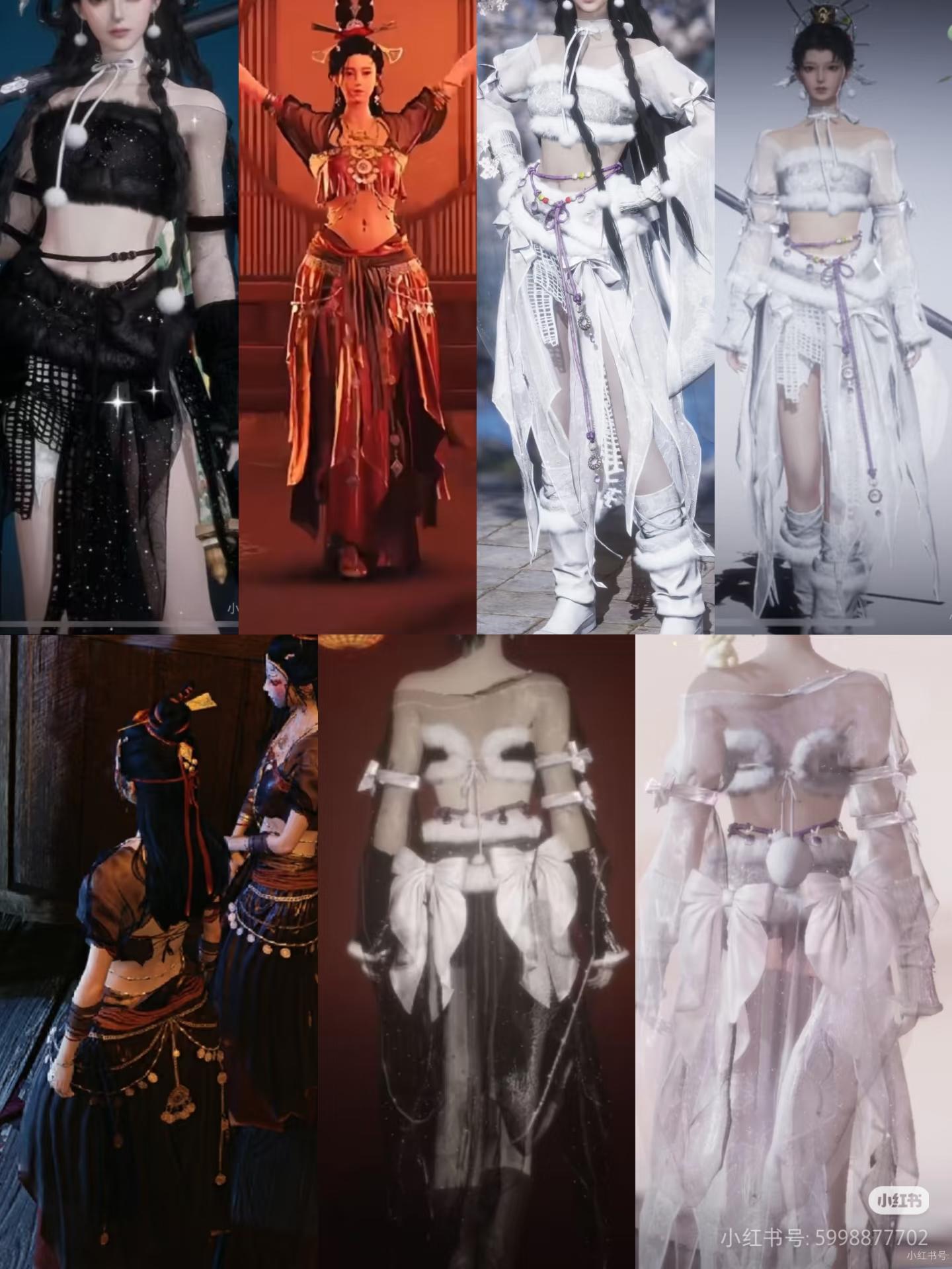 不排除这个衣服有萌的正常加裤子的穿搭,但是这个渔网,这个漏底裤,纱可以染成透明,这个蝴蝶结,毛边家露腰露腿,已经有人通过这个服装开始涩情化女号了,正常搭配玩家没理由发挥搭配之力为这件衣服缺少的布料多花心思,多花钱后面那几张图我晃一眼我以为是那个黄色网站的3d区人物跑出来了,早说我下的是情趣游戏啊。当然可以不用染成那样,但是不染成那样不代表这种染色不存在,也改变不了后面就是一根绑带的设计以及超短裤