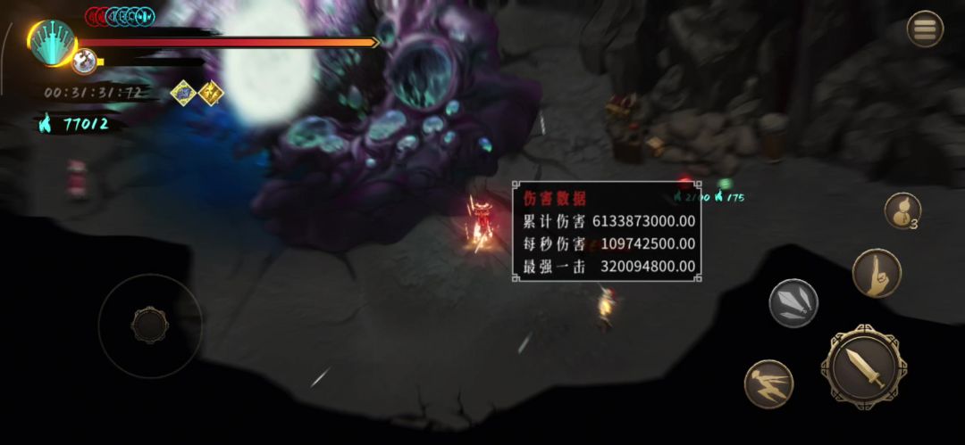我万剑刮痧过的混沌断点,多注意走位,开雷霆战机就好。森罗:黄+蓝,终极回响,轩辕,打木桩最强一击不到一亿吧,最后两关多读几次档就刮过去了