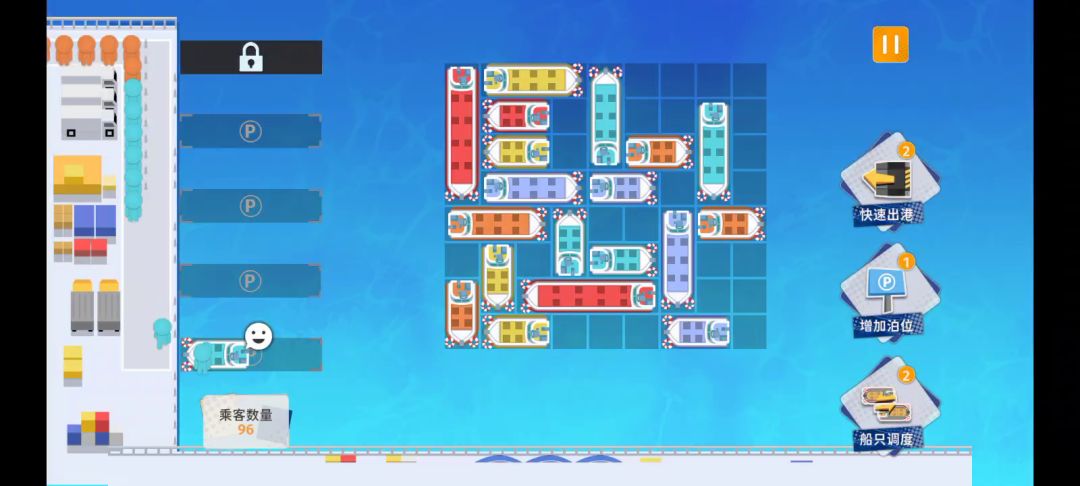不要有啥拉啥,先疏通航路,有时候需要提前停两个甚至有时候需要停三个,提前看下批乘客。先上可能堵航道的下批乘客,就行了。这个思路同样试用所谓有bug的30关。