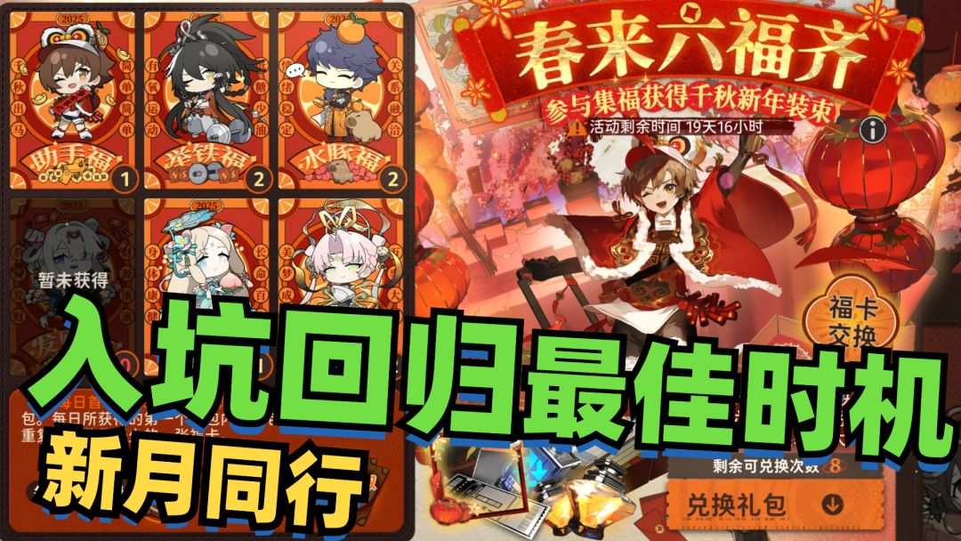 无需做任务,累积领取29抽+5星特工自选!新用户累积领取79抽+5星特工自选+5星特工白槿!【千秋-利是特派】可通过参与春来六福齐的集副卡活动,免费获得。 #新月同行瀚海千年 #新月同行 #游戏安利 #游戏推荐 #熊猫君推荐