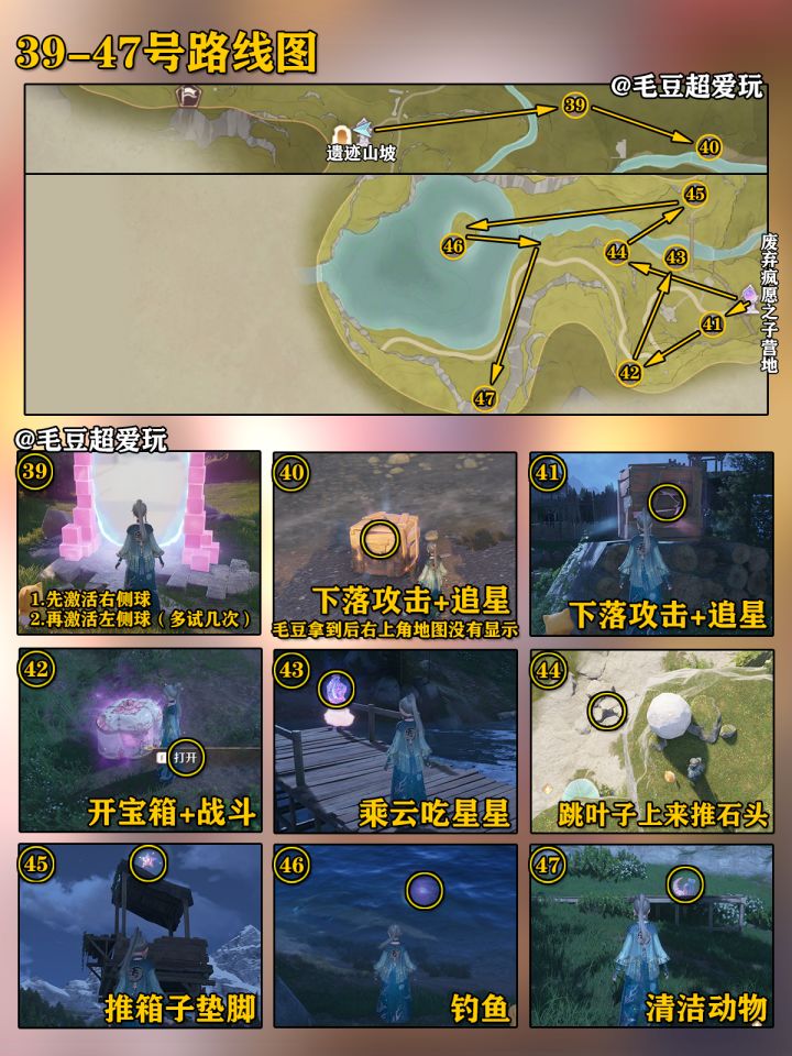 这里是毛豆,本期为大家带来的是《无限暖暖》微风绿野-奇想星全收集的上篇,共计包含1-57号奇想星的详细路线,由于图片上限,58-90号奇想星请移步微风绿野奇想星全收集-下篇。(下篇传送门:https://www.taptap.cn/moment/613666996319423122)开启攻略前的小提示:奇想星的获取方式有很多种,包括限时时间内收集星星、钓鱼、清洁动物、捉蝴蝶、秘境谜题等,毛豆在