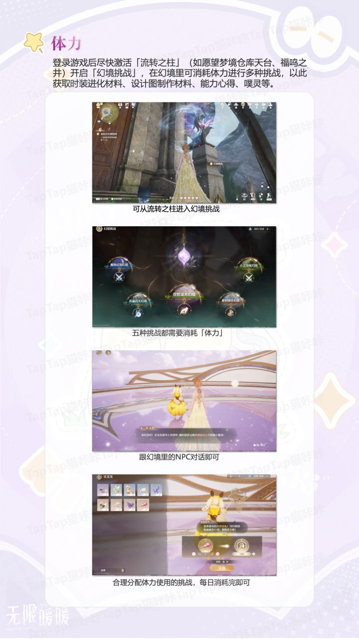 很多萌新在进入《无限暖暖》后可能会一脸懵逼,因为这个游戏的内容实在太多辣!今天猫咔就给大家介绍一些萌新需要了解的内容,以及玩游戏时的小技巧,帮助大家快速上手。图/文:猫咔大王本文首发TapTap,未经允许禁止转载一、游戏货币与贵重品游戏里有多种货币和贵重品,主要用于消费、抽卡和兑换材料等。1、噗灵:游戏金币,可通过做任务、穿搭比拼、大世界随地捡等多种方式获取,主要应用在点亮无限之心、制