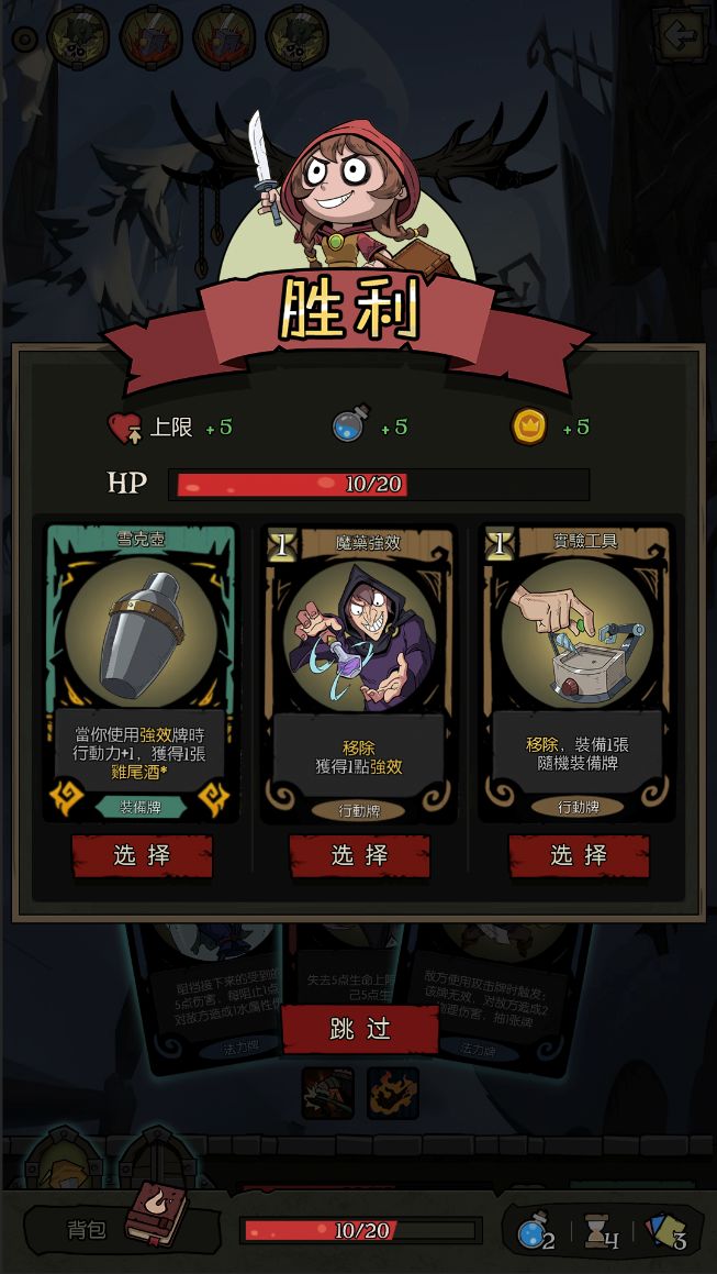 1.1战斗胜利后,选择新增“跳过”按妞,增加玩家卡组精简空间。