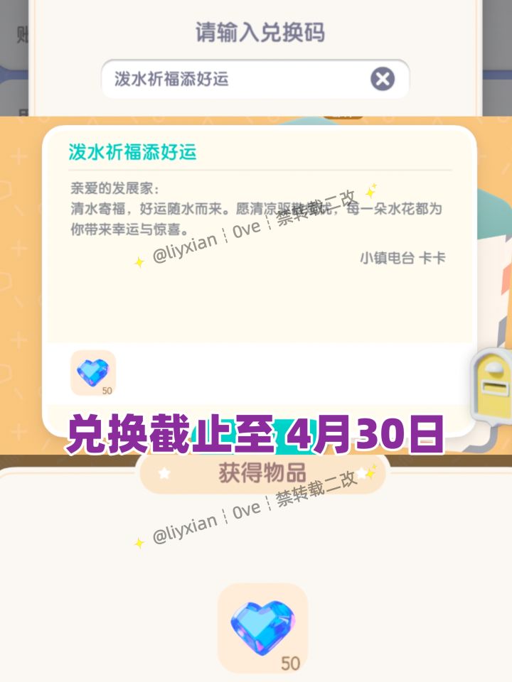 今日兑换码:E3B7X6V、泼水祈福添好运 (当天24点前兑换) —① (4.25)溜溜橡木&无暇萤石https://www.taptap.cn/moment/797005588704788665?share_id=a01c26b245e8&utm_medium=share&utm_source=copylink△ 4个新增金色服装泡泡 获取位置https://www.taptap.c