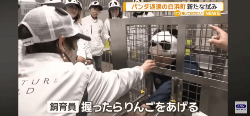 据日本朝日电视台12月27日报道,日本和歌山县冒险世界游乐园的大熊猫 “良浜”“彩浜”“枫浜”“结浜”,今年6月按协议返回中国,大批日本民众满心不舍。为挽回游客,乐园于11月推出大熊猫饲养员体验活动。参与游客会身着饲养员制服、佩戴熊猫主题帽,沉浸式体验饲养工作,活动包含给 “大熊猫” 模拟抽血等项目,现场 “大熊猫” 均由工作人员扮演。报道指出,熊猫归国对当地旅游业打击严重,一家旅行巴士公司工作