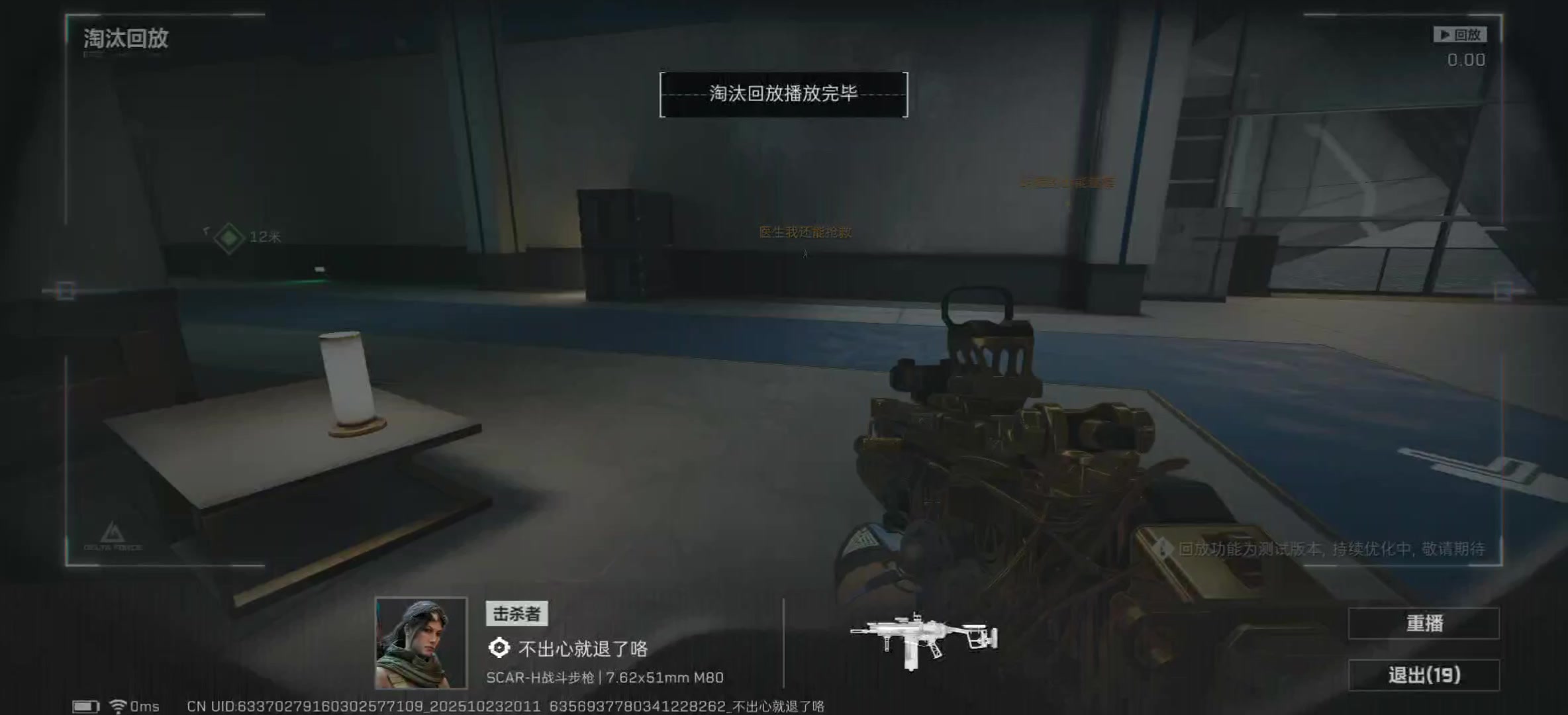 我的视角就看到他,漏了一个小手肘,我以为是我抓到他的timing了,结果他手肘发射子弹给我杀杀了。肯定会有人说是回放bug,如果只是回放他没漏,可能是bug,但是在我的视角里他也是没漏的,我的视角里他就漏了一层衣服 ,我都不确定衣服能不能受击。而且我也没这么唐,他都打这么多枪,我还不开枪,因为我真的只能看到一层衣服#三角洲行动