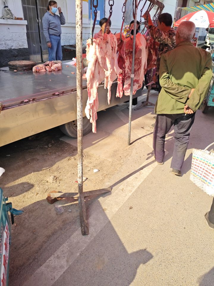 俺们村五天一次的小集,给俺妈买四斤排骨炖炖,十五一斤,师傅老熟人了,切肉嘎嘎快