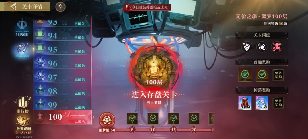 有个老哥抬杠不相信0命侠过的噩梦50层,特发视频。 这里吐槽下,视频回放功能不记录白日。 视频boss的时候有3处明显失误,画面太杂乱了,死了未来和呼噜。(本来可以一个不死的) 侠我是用来破韧的,输出是未来。用未来的无敌机制躲boss和精英怪的某些技能