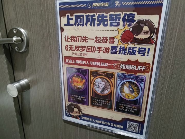 这样,不管是今天在办公楼挤电梯的,开会的,扔垃圾的,上厕所的...都知道了!!甚至这套物料还和我们的游戏类型肉鸽贴上了,难道我真是个天才???但总感觉还有点什么遗憾,哦对,就是我想说,如果能去你们学校和公司厕所也贴上就好了不愧是你