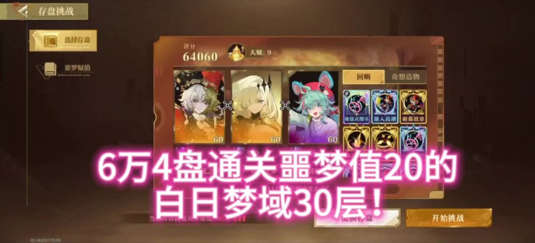 6万4盘通关噩梦值20的白日梦域30层攻略实录