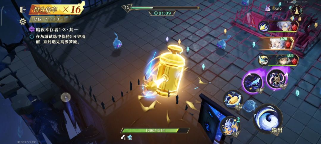 有普攻触发的就拿,打第二个boss真要牺牲的就献祭3号,后面出来就40多万分,后面再打10w分到50w全靠摇滚遛狗,我是放技能卡了几下,其实全程平a跑路就可以,普攻+普攻触发的技能就够小怪吃一壶,视频我发了学不学的会就看你们了, 最后,有个摇滚很重要,后面全靠他苟分#幸存者挑战
