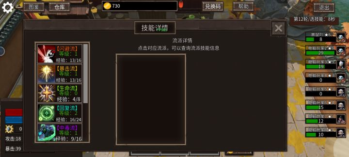 体感一般吧 1.流派少.2没有宝物.3选技能的时间太短了我个人有的时候还没清楚自己选的啥技能就开始了4.技能特效不是很明显,我完了十把左右了也没太分清那个特效是哪个特效。5.图片1是我选的技能图片2是商店界面可选的 没有闪避但是我还是能选闪避这点我有点没搞懂。6.希望有一个新手教程。希望游戏越来越好。赞已点