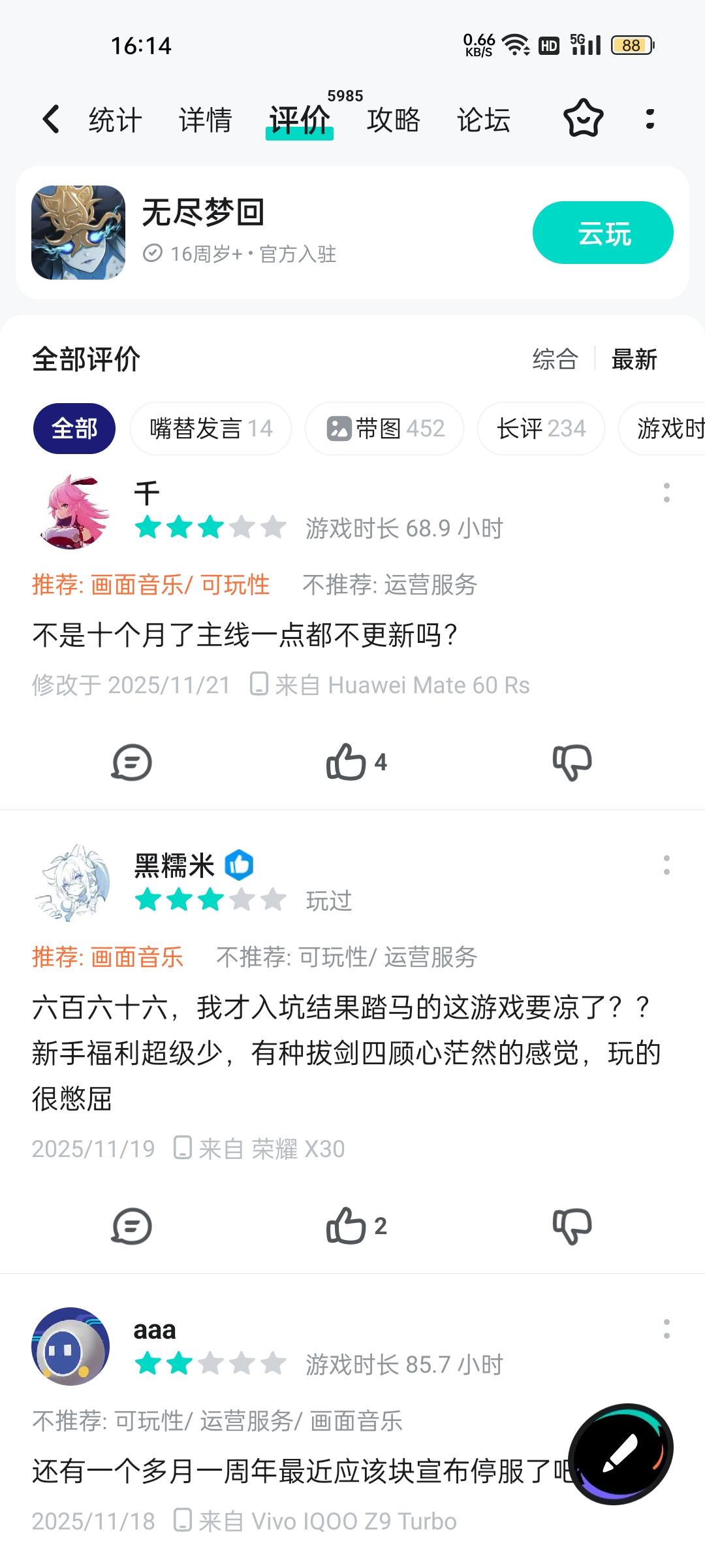 弹指新游戏诡秘之主即将上线,我怀疑三望不做内容,本质就是为新游的制作提供资金来源。而新游戏的本质,与三望大概相同,也是短期收割型其公司人数有几百,并不缺人,但是内容稀薄,是没有倾斜资源,所做一切都是极端的成本取舍。而且每一款游戏,无尽梦回,超时空跑跑,都在复刻这个短期收割,崩盘,再做新款收割的闭环最关键的是其可能一开始就锚定了不断做短期收割游戏的路子,做一款就没有长期运营的打算,不停收割玩家