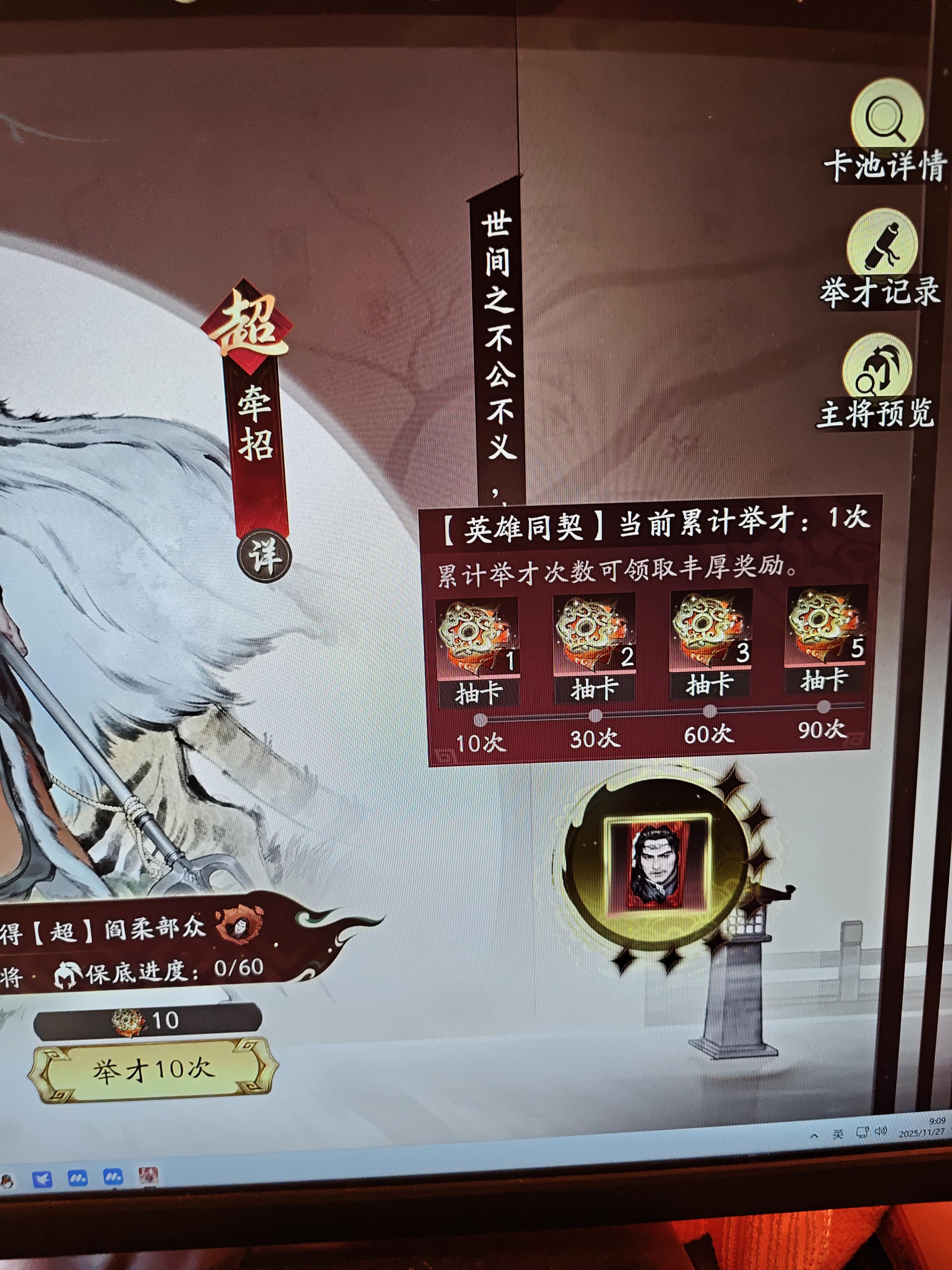 【抽将记录】高顺,入队!剧本等级60 抽到