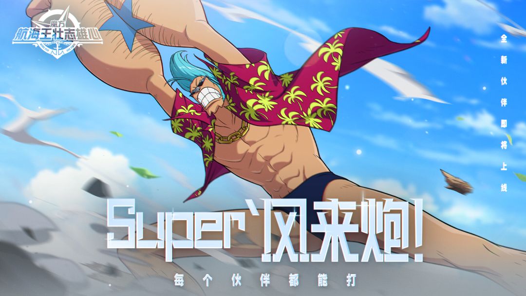 S——uper~~~弗兰奇! 以可乐作为能量,消耗可乐替代技能冷却。 改造后的强大双臂,将空气压缩成“风来炮”轰飞对手! 「铁人」弗兰奇将于8月22日上架【推荐商店】,售价1980金币或1380钻石。