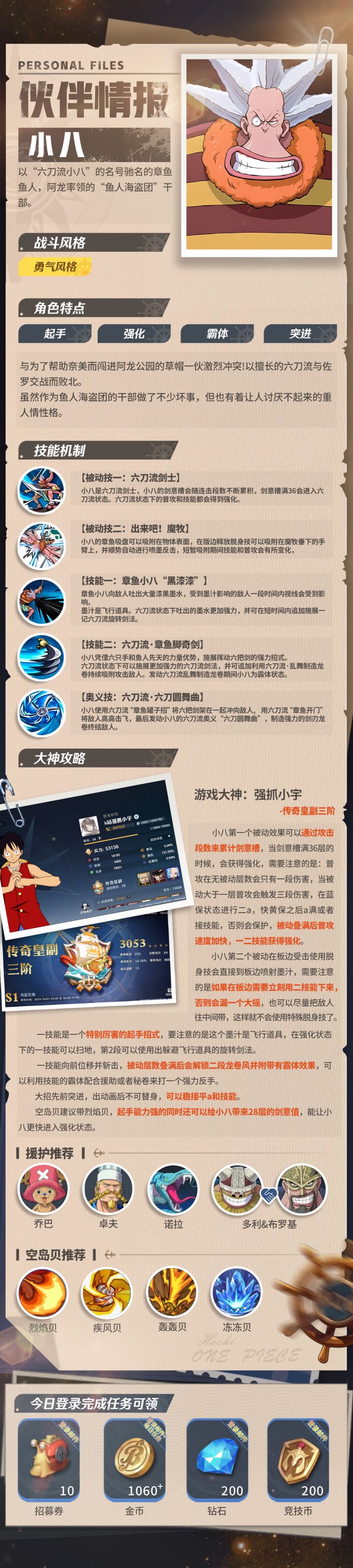 Punk-04的伙伴战斗数据库已更新!传奇皇副Ⅲ阶的@魔方海贼诺德 船长分享的巴奇作战技巧攻略收录完毕,欢迎船长们分享更多上分技巧,Punk-04将继续完善该名伙伴的作战情报! #魔方海贼王 #魔方航海王 #海贼王 #航海王 #航海王壮志雄心 #航海王壮志雄心预约开启 #航海王壮志雄心首测出航
