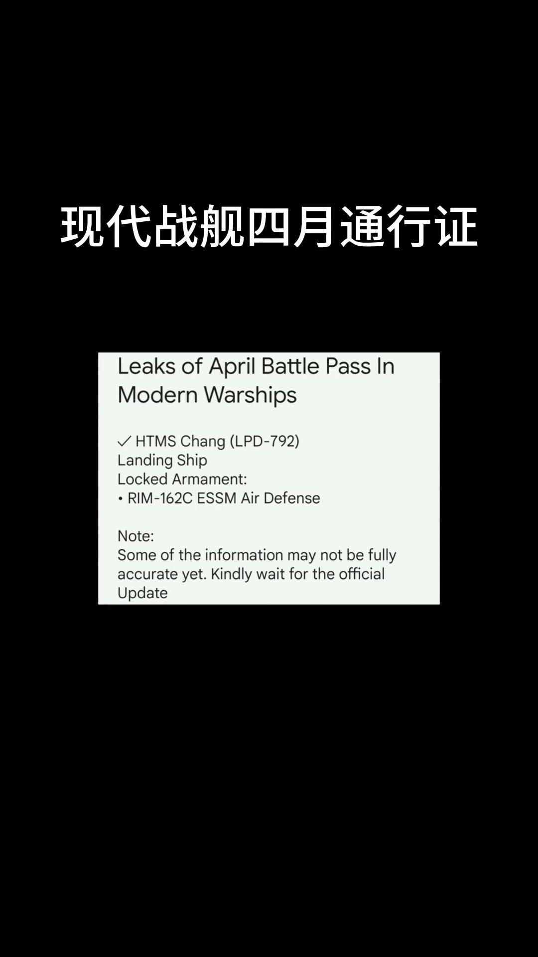现代战舰即将推出的四月通行证