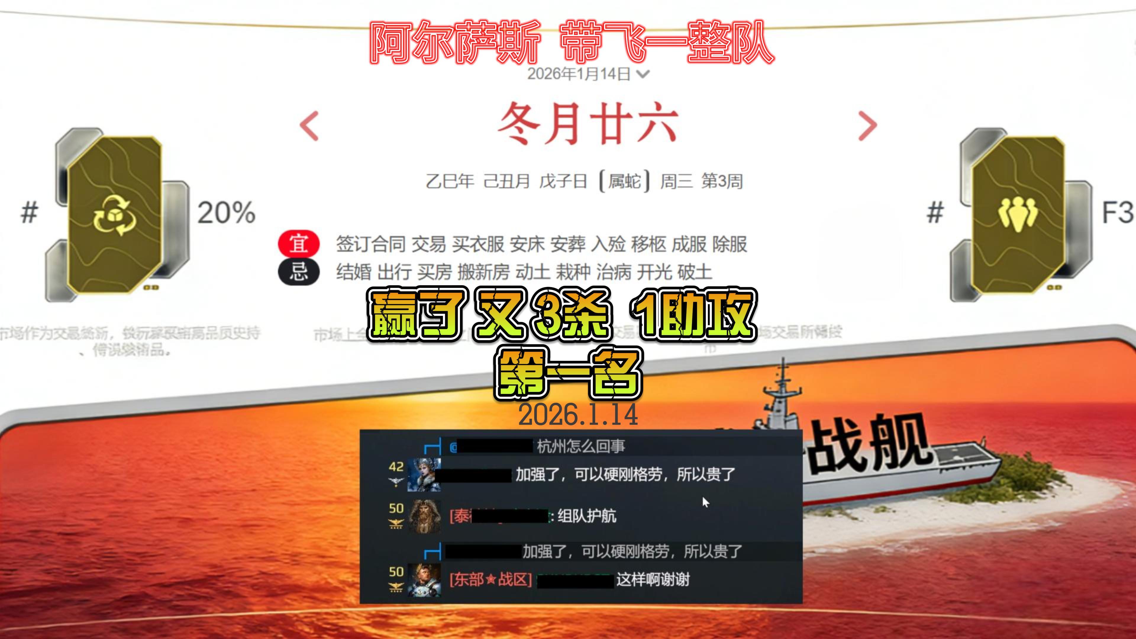 现代战舰 1月14日 赢了 又3杀 今天有大瓜