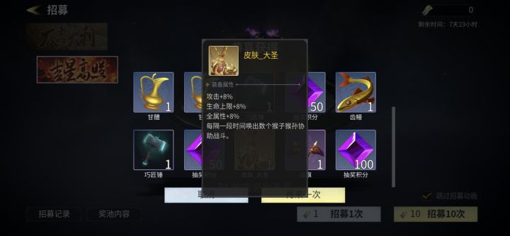 哈哈哈,隔了半个月没玩10月卷子加补偿抽完直接给个大圣还有福灵。美滋滋!!完美