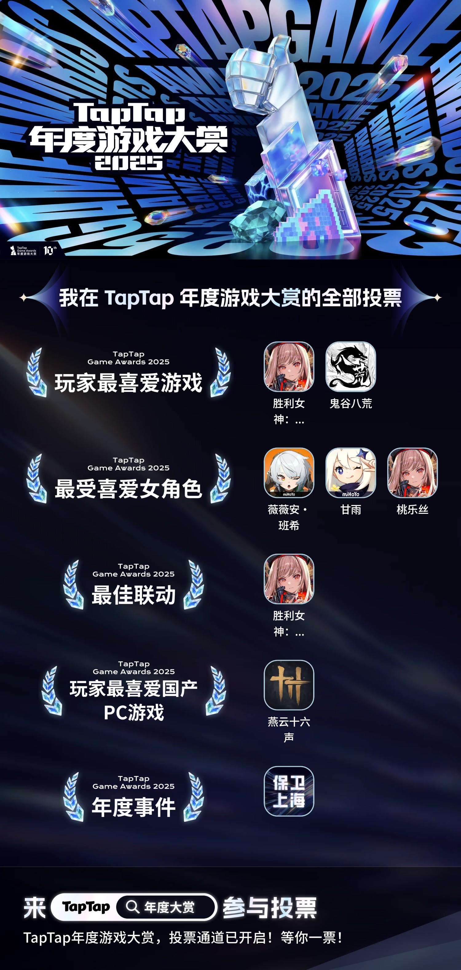庆祝入围2025TapTap年度游戏大赏