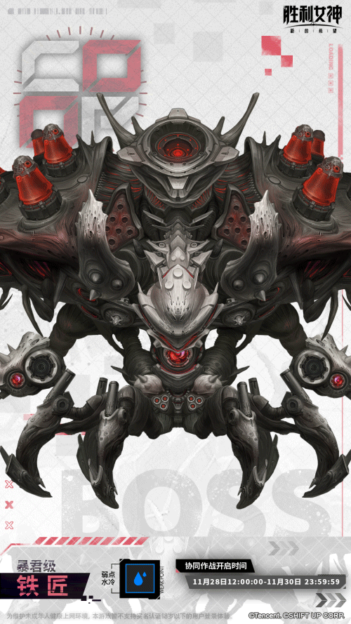 本次协同作战的敌人是【铁匠】协同作战将在以下时间进行:2025/11/28 12:00:00~2025/11/30 23:59:59在大厅 - 活动 - 协同作战中加入战斗吧!#胜利女神新的希望 #nikke