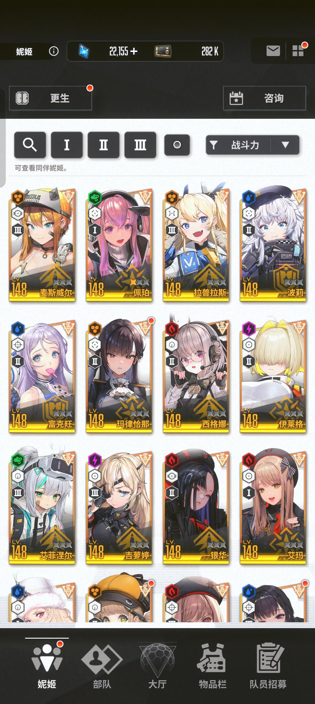 一、开局思路首先要明确你要走的路线主要分为三种休闲玩家&收集党&XP党主个突&联盟战主竞技场这里先不说明什么是个突和竞技场,简而言之休闲玩家只需要抽取一只t0推图角色保证不会被主线卡疯即可,对开局抽取思路要求不高但可玩性相对较低。而个突和竞技场则是需要对开局妮姬抽取有一定要求和一定肝度氪度保持名次来获得钻石称号动态头像框等高级资源,所以可玩性较高。开局选好开局思路后就能开始刷号或者买号了。休闲党