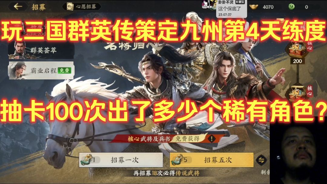 玩三国群英传策定九州第4天练度,抽卡100次出了多少个稀有角色?