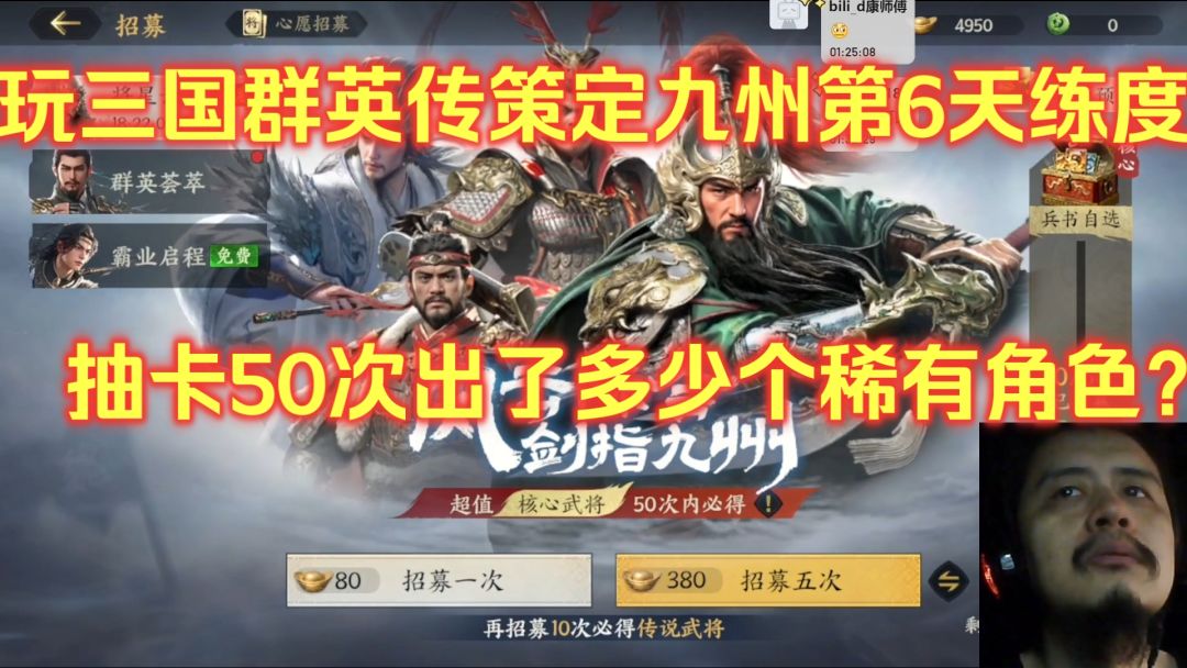 玩三国群英传策定九州第6天练度,抽卡50次出了多少个稀有角色?