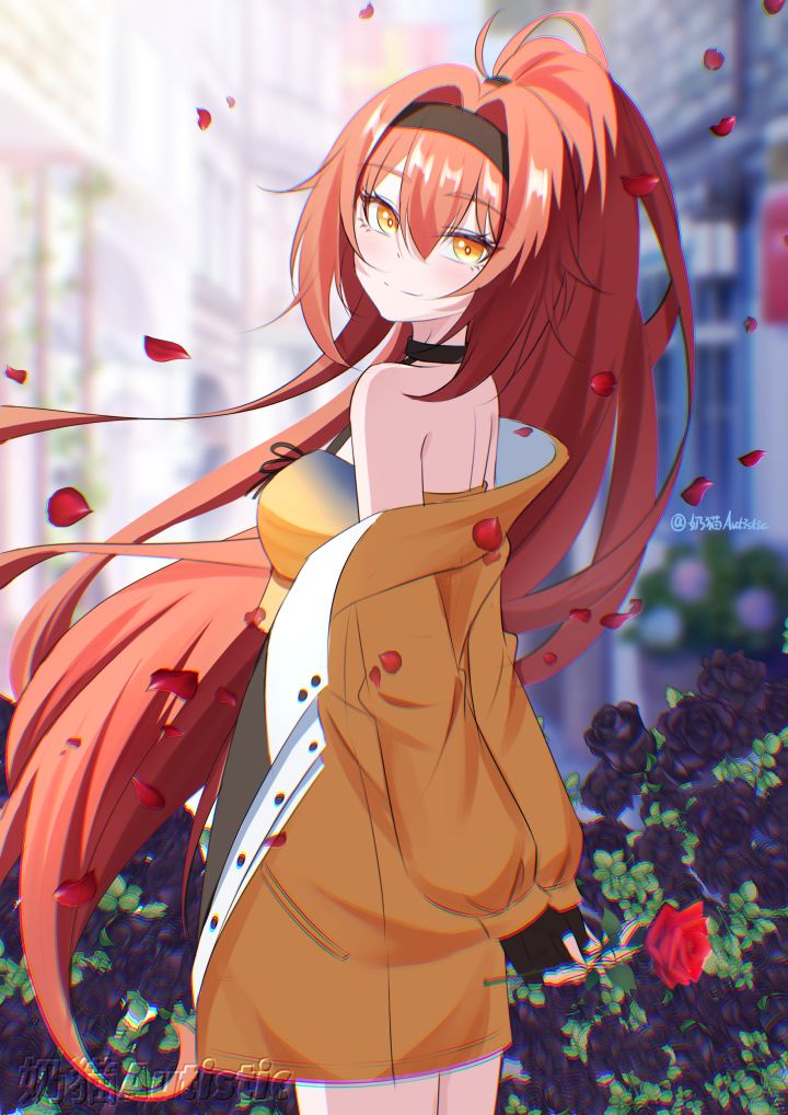 先上图要素是:1.一堆平行四边形色块的背景2.人物眼部红光3.深邃黑暗(?)与高亮黄光4.存在感很低的红光5.深灰色LOGO但是我们直接按这些要素去套纸片人的话效果不一定好看,首先是眼部红光的问题,原图红光把整个眼睛都遮住了,但纸片人大多不戴眼镜,总不能眼珠子一片红吧。然后关于深邃暗面,纸片人也不适合这种风格,原图的处理使得人物的具体特征和身份不可辨别,但纸片人不需要“隐藏身份”,再