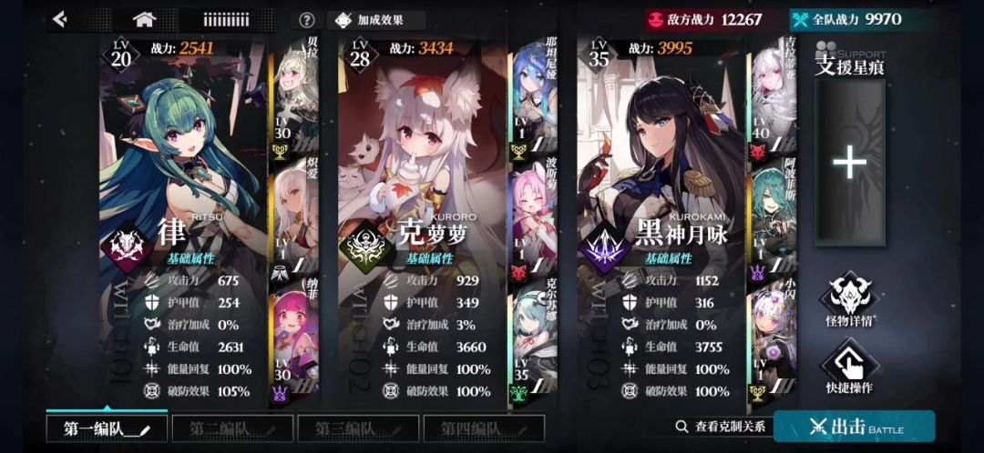 玩的侵蚀队,蛇蛇的觉醒很高,抽小闪出了很多,白龙是觉醒1,因为新手池也出了她,挺喜欢的就懒得再刷初始号了,这个配队开局就有一魂,第二回合开始就有三魂了,话说领域不能叠加嘛...很无语,律我搭不来,破弱点的星痕没啥好的,练度有点低,没玩多久