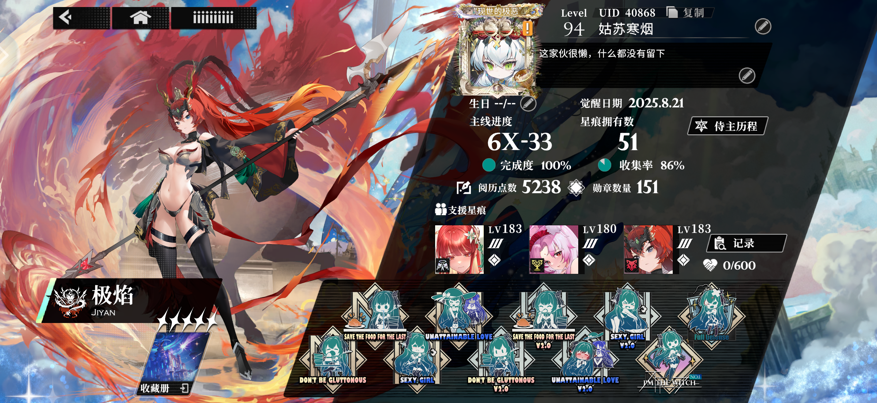 极焰拉满,1.0没拉满现在拉满了,神光差三个圣物其余都拉满,心契白嫖的一个都没用