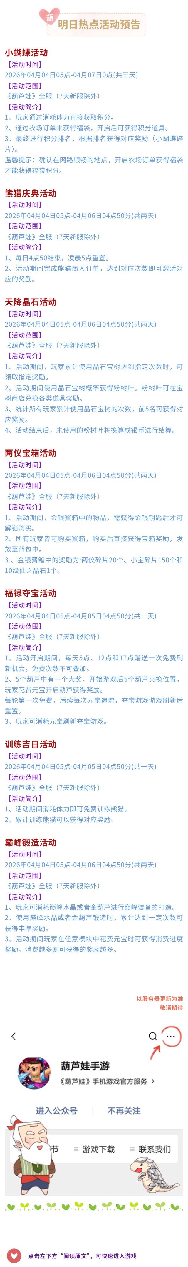 【葫芦娃】4月4日活动预告
