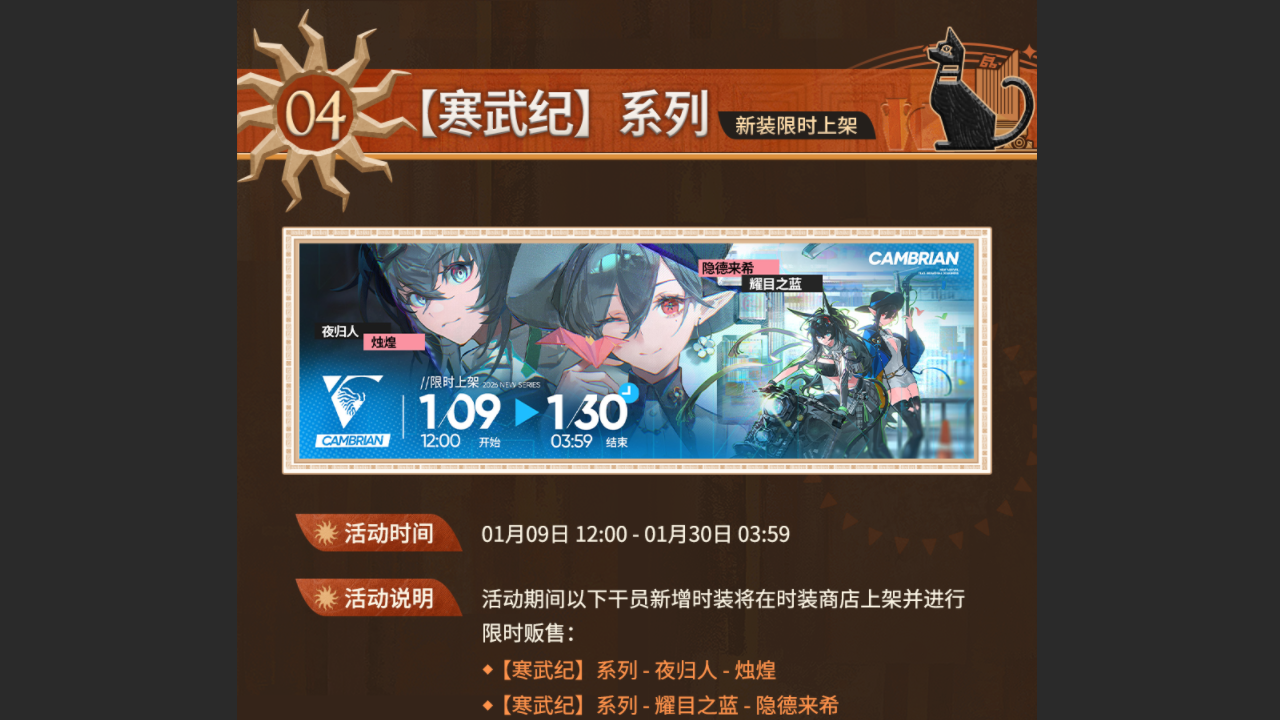 1月9日 SideStory「雅赛努斯复仇记」限时开启!更多活动内容及福利详情敬请关注官方公告。