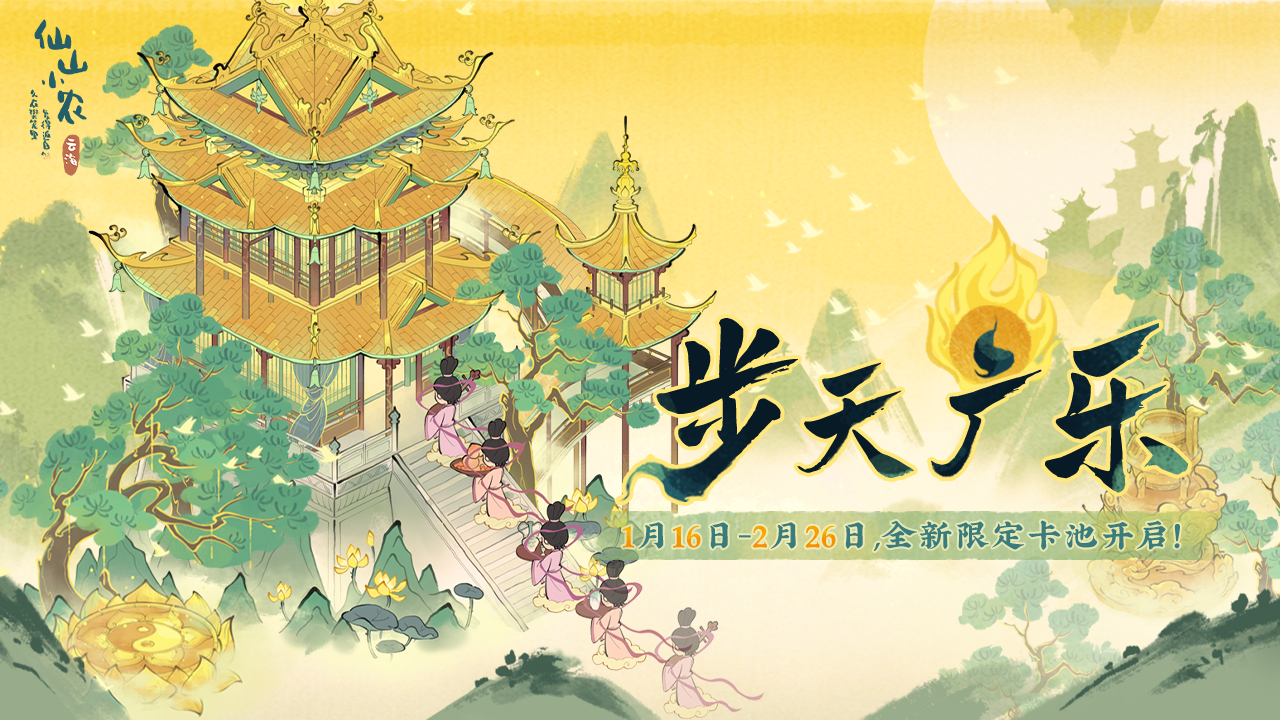 全新「华光照岁」「步天广乐」卡池即将开启!新增天级帮工「马天君」、天级建筑「白玉京」。欢迎小农前来探索~